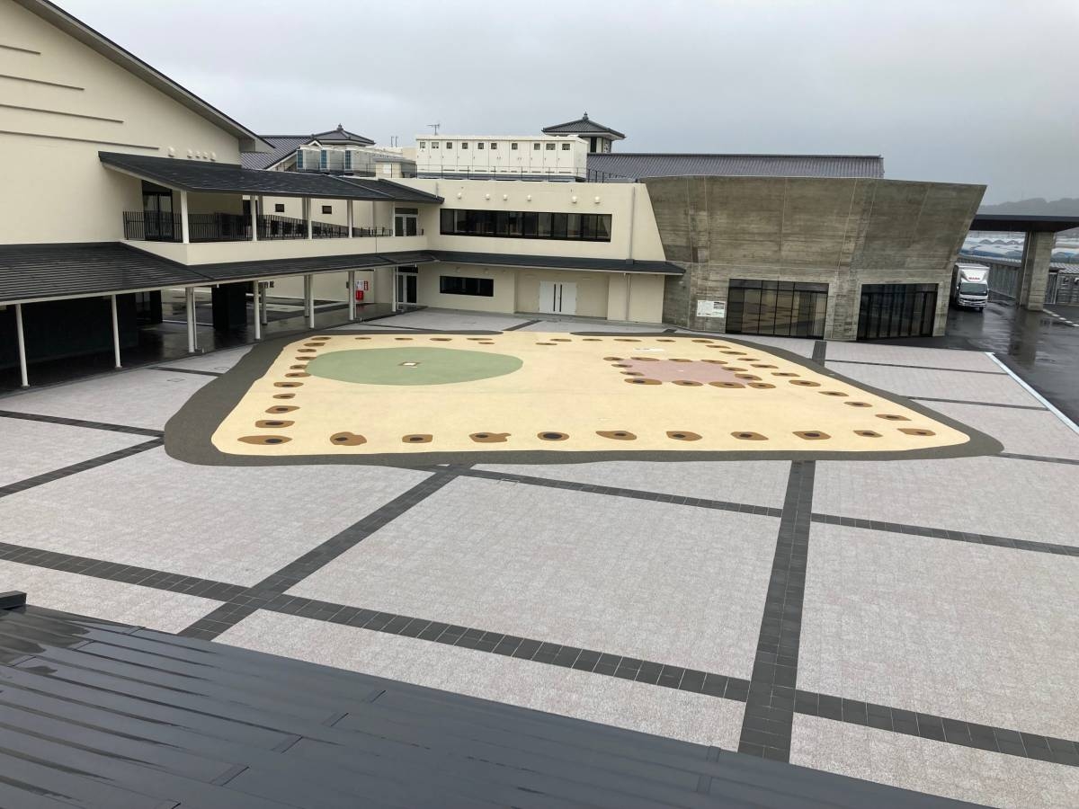 自然石を骨材に使用することで、自然の色彩や風合いが周囲の環境を損なわない舗装と高級感を演出いたします。また有色骨材を使用することにより、カラー舗装や路面に文字や絵などデザイン施工も得意としております。